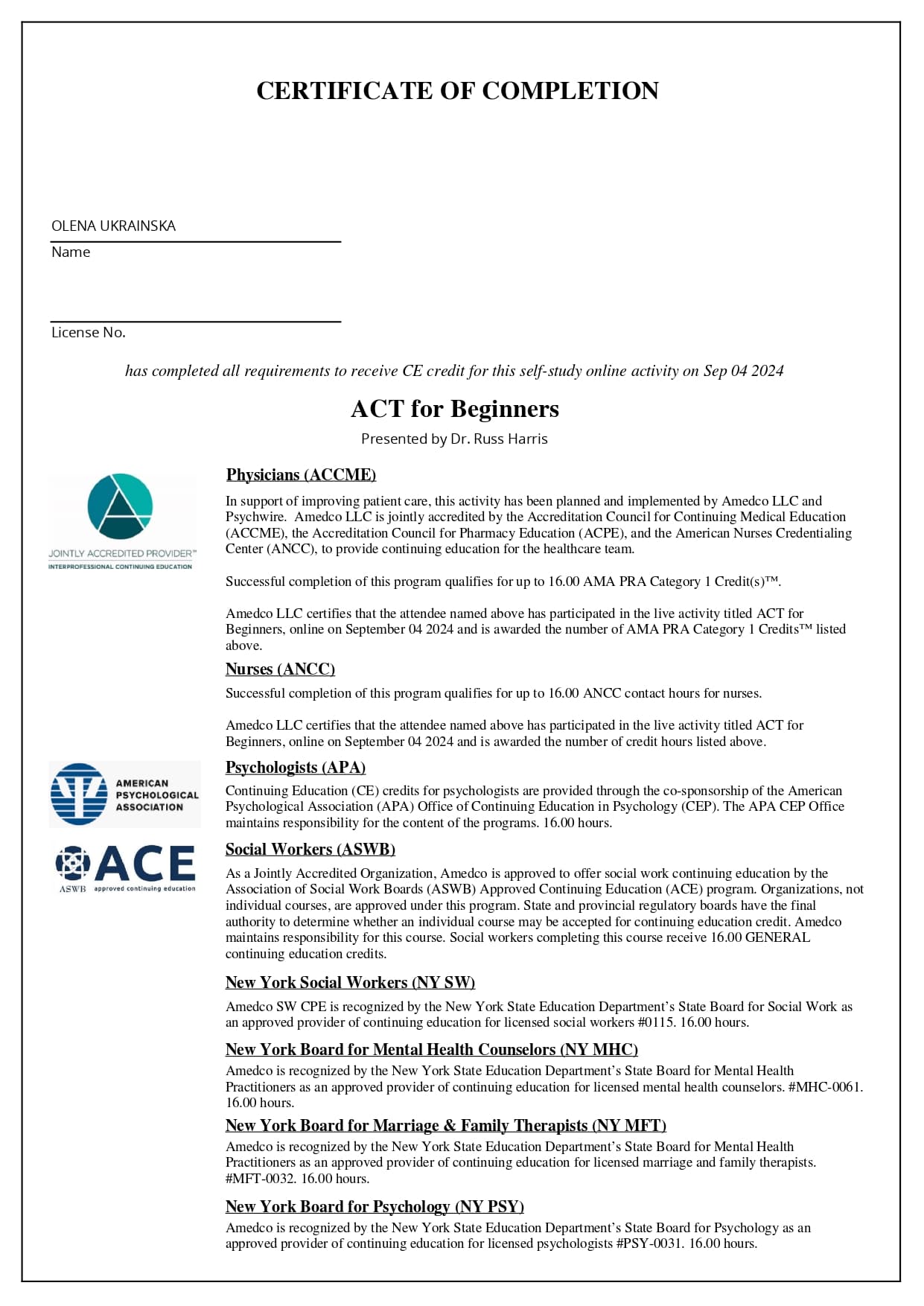 Дійсний член Національної психологічної асоціації. Співавтор книги «Райдуга твого успіху»."