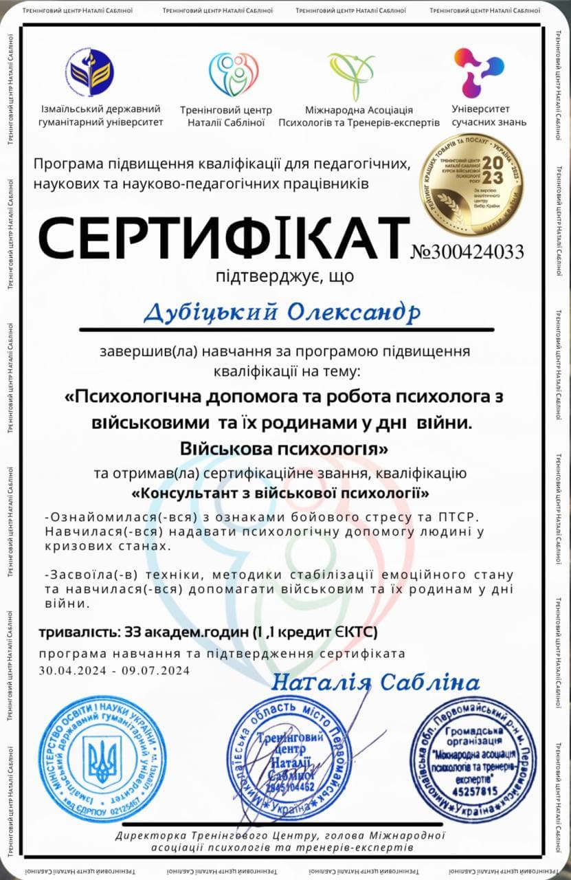 Я практикуючий психолог, психотерапевт. Досвід роботи більше 6 років. Працюю з дорослими та дітьми від 10 років."