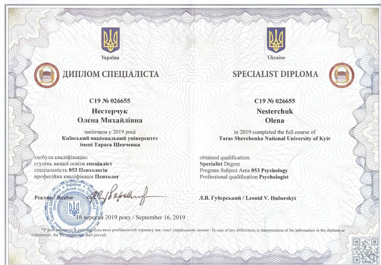 "Вітаю, мене звати Олена Нестерчук, я практикуючий психолог.